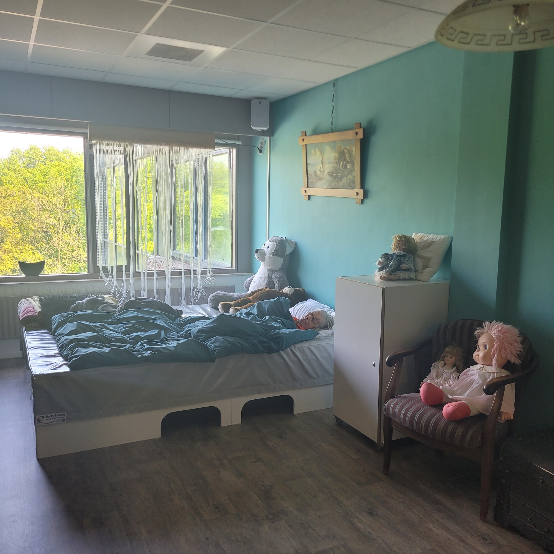 Wij hebben verschillende mogelijkheden voor zintuigactivering (materialen die laten voelen) en snoezelen (waterbed, bad, lichteffecten) tevens kunt u samen met uw partner. ouder op het waterbed liggen waardoor er ook een mogelijkheid is voor fysiek contact.